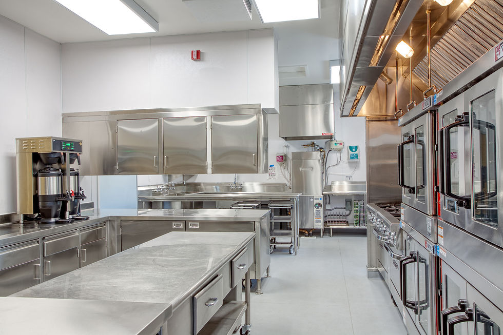 An industrial kitchen created for St. Vartan's Armenian Apostolic Church, to accommodate their many community events. The space incorporates industrial grade, stainless steel custom cabinets, food prep sinks, batch baking equipment for high-volume fundraising events, and other state of the art features.